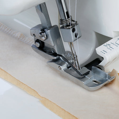 Create a tailored finish and add definition to edges with the piping foot. This foot allows you add premade piping to edges and seams or to create custom piping using fabric and cording.