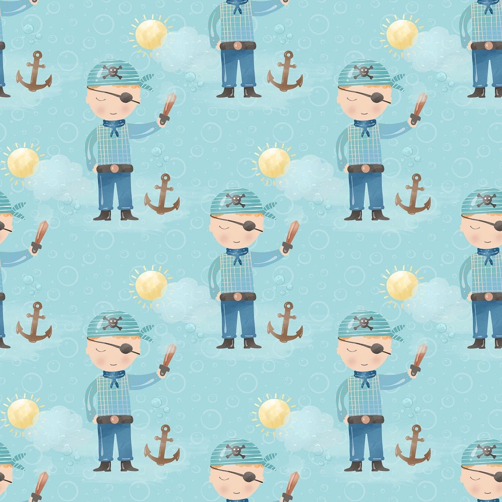 The Blue Pirates & Bubbles Fabric is part of the Pirates Fabric Collection printed by Sew Creative Fabrics. Digitally Printed on 100% cotton.