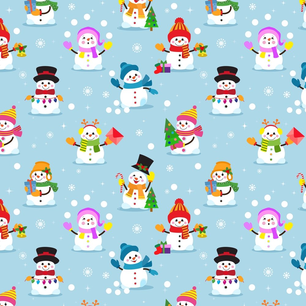 Playful Snowman Fabric - Blue Details
