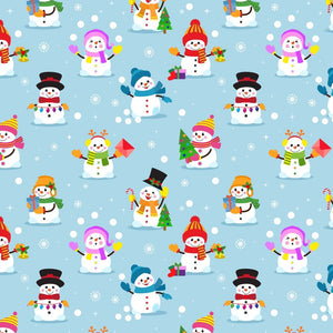 The Blue Playful Snowman Fabric is part of the Christmas Fabric Collection printed by Sew Creative Fabrics. Digitally Printed on 100% cotton.