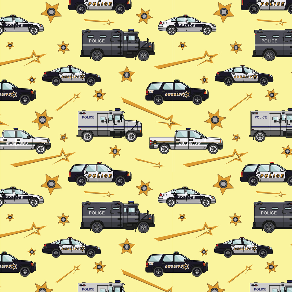 Police Badge and Police Vehicles Fabric - Yellow Details
