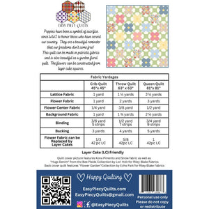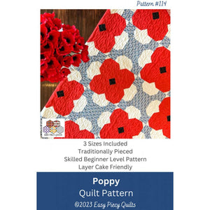 Designed by Juliah Tiedmann, the Poppy Quilt Pattern from Easy Piecy Quilts is an outpour of support for the service and sacrifice of our troops and stands as a symbol of remembrance. Poppies are a captivating reminder of the price paid for our freedom. Recommended for beginner-level quilters, this design is traditionally pieced and layer-cake friendly. This pattern includes instructions to create a crib, throw, or queen-sized quilt. The Poppy Quilt Pattern has detailed instructions and a suggested list of materials.