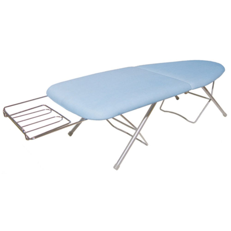 Sullivans Go Board is a portable tabletop ironing board perfect for small spaces or traveling. At only 12" wide and 32" long, this foldable and lightweight board can sit directly on your table or countertop with ease. The Go Board even features an accommodating fold-out iron caddy to rest your hot iron safely. The legs fold, and the board conveniently folds in half for easy portability and storage.