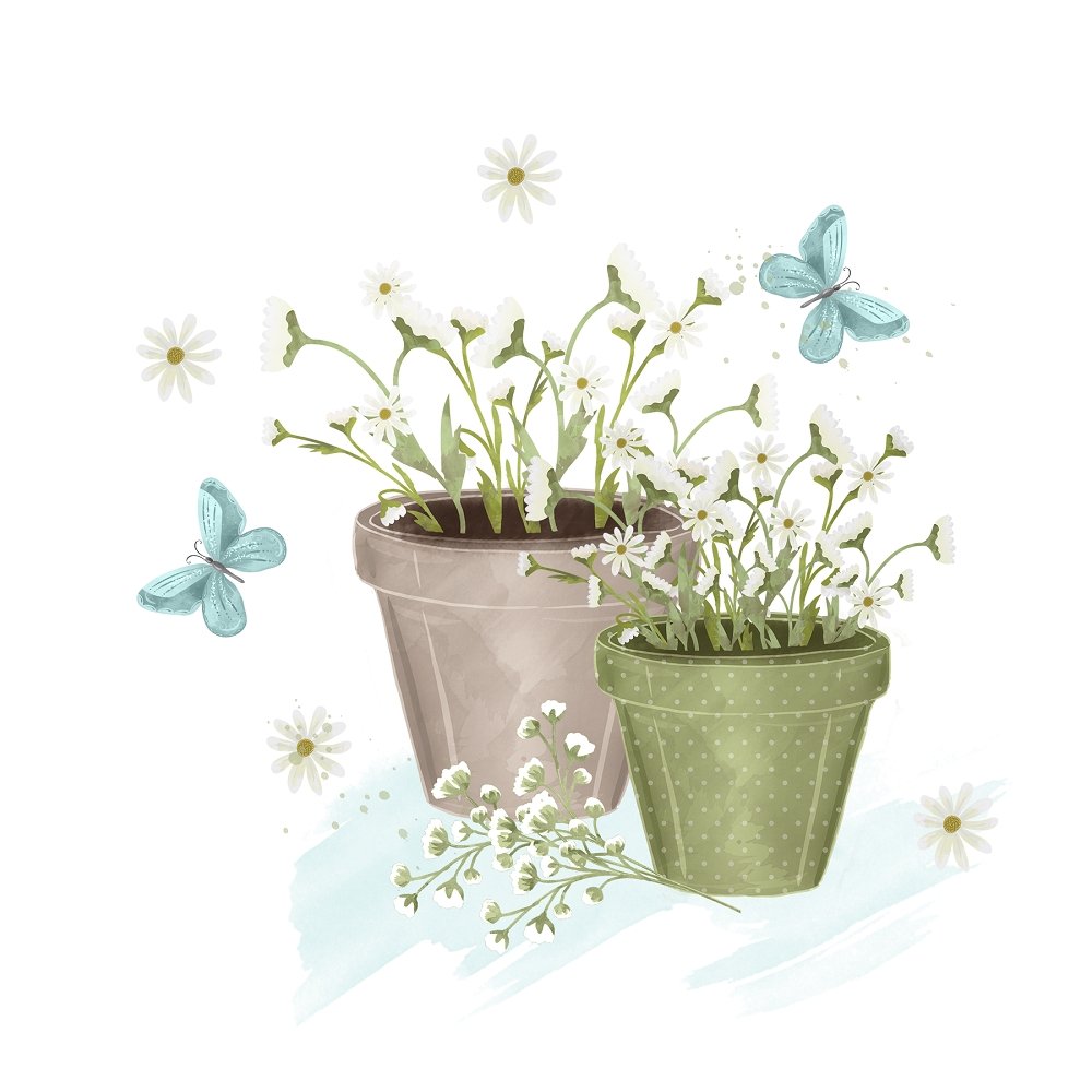 The Potted Daisies & Butterflies Fabric Panel is part of the Spring Time Daisies Fabric Collection printed by Sewing Parts Online. Digitally Printed on 100% cotton. This panel is available in 6 different sizes: