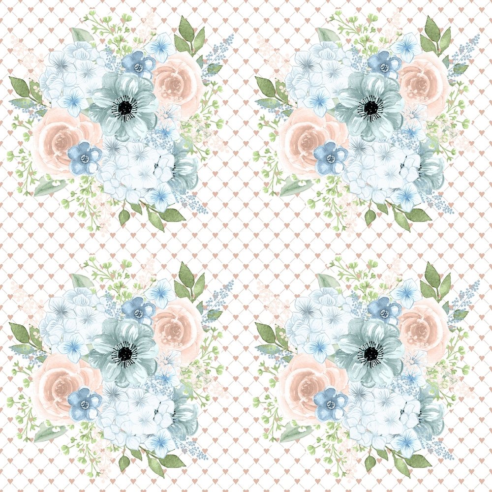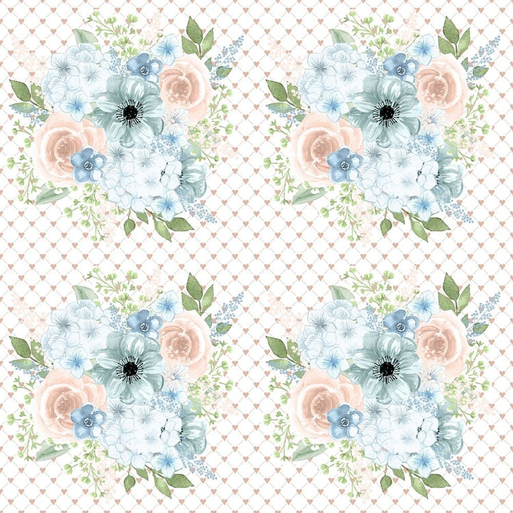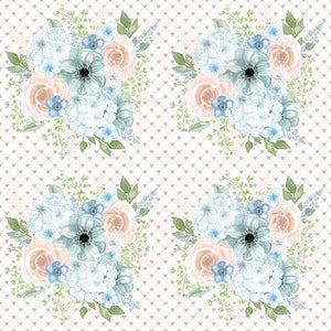 Powder Blue Bouquets on Hearts Fabric