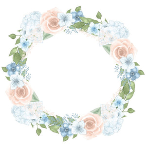 Powder Blue Wreath Fabric Panel is part of the Powder Blue Fabric Collection printed by Sewing Parts Online. Digitally Printed on 100% cotton. This panel is available in 6 different sizes: