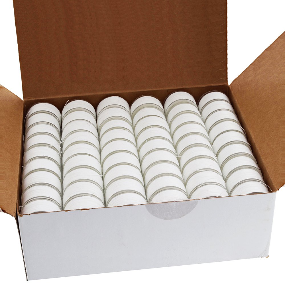 Pack of 108 genuine Janome, pre wound bobbins with white thread.