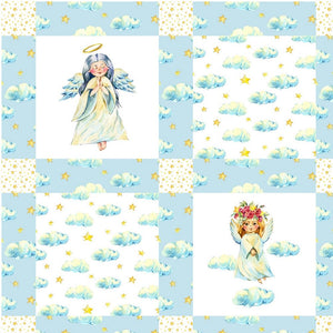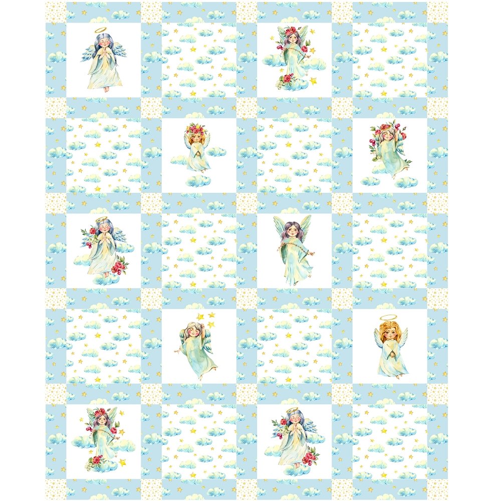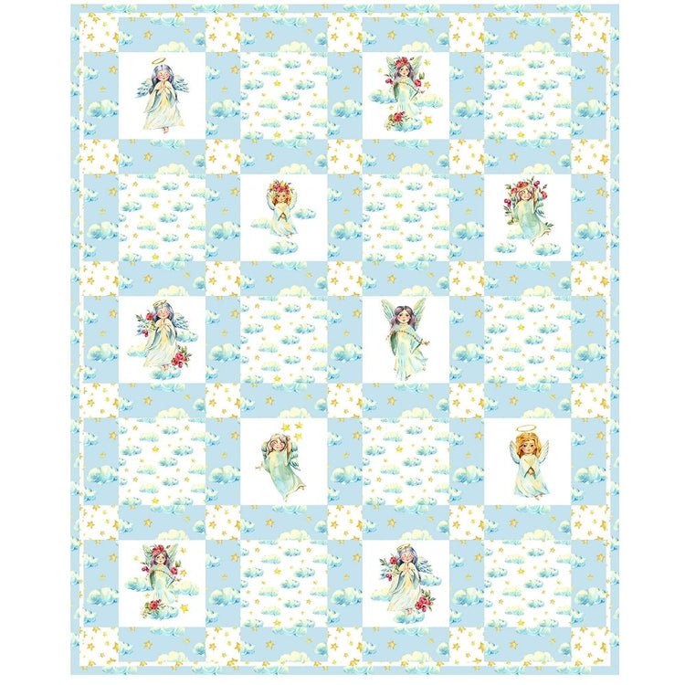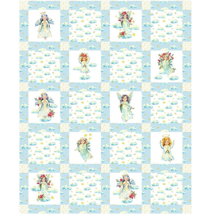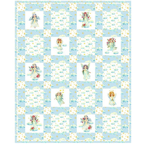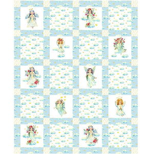 Using all of the Precious Angels panels this beautiful vintage quilt really highlights the essence of the Precious Angels collection. The Precious Angels Quilt Kit includes everything you need to make the quilt - the pattern, 10 panels, and a total of 4 1/2 yards of fabric for sashing, backing, and squares. Batting is sold separately. The finished size of this quilt is 30” x 37”.