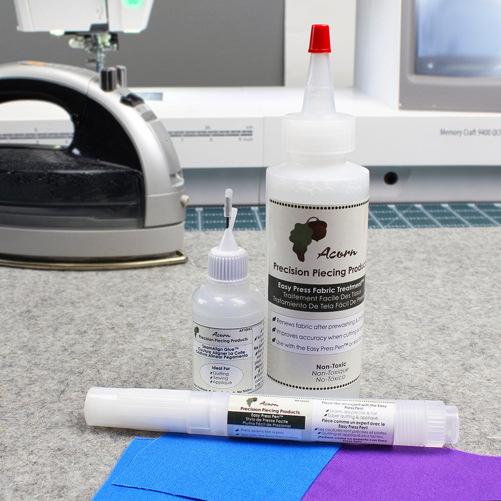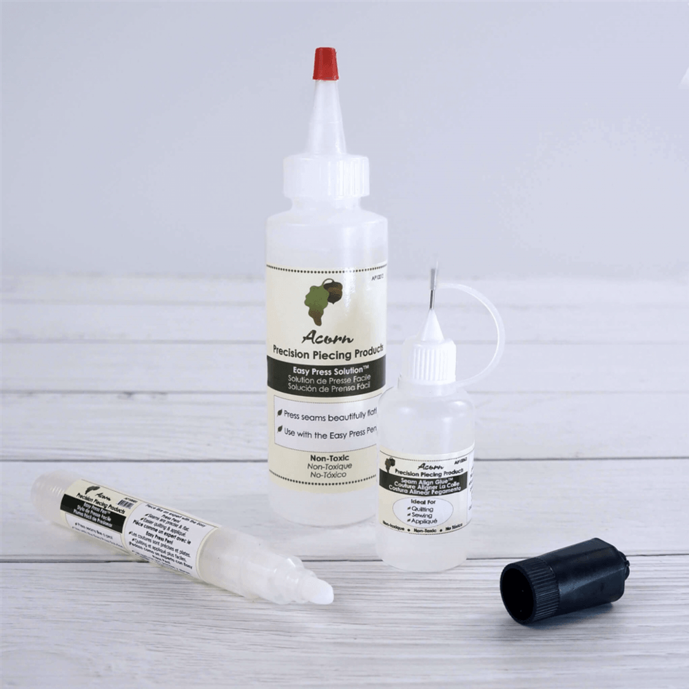 The Easy Press Fabric Treatment is a quick and convenient way to flatten seams after sewing. Simply open up a sewn block, apply the Easy Press Fabric Treatment along the edge, then press with an iron. The result is a precise and perfectly pressed seam that will add a professional touch to your projects.