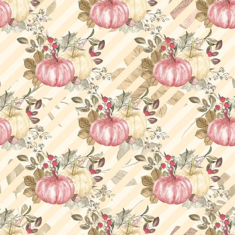 The Tan Pumpkin Paradise on Diagonal Stripes Fabric is part of the Pumpkin Paradise Fabric Collection printed by Sew Creative Fabrics. Digitally Printed on 100% cotton.