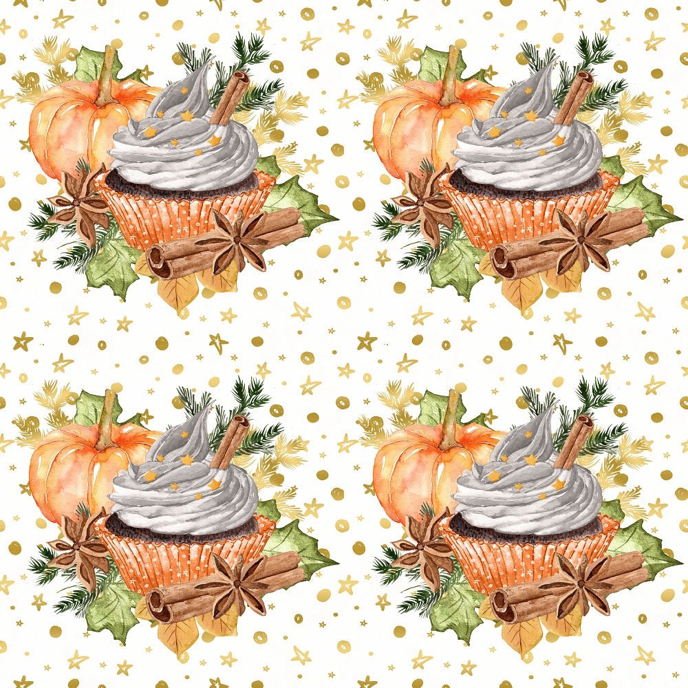 The Pumpkin Spice Latte Cupcake on Stars Fabric is part of the Pumpkin Spice Latte Fabric Collection printed by Sew Creative Fabrics. Digitally Printed on 100% cotton.
