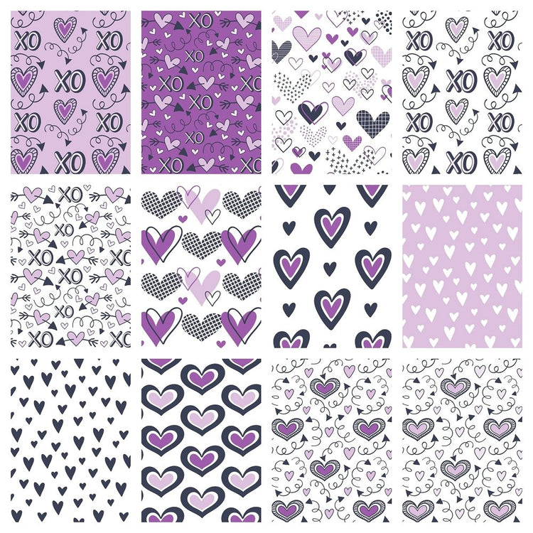 Purple XOXO Hearts Fat Quarter Bundle - 12 Pieces