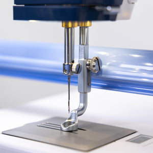 Enjoy stitch regulation on a domestic machine without paying long arm prices. The Rebel comes equipped with a built-in stitch regulator. The machine's motion is monitored via the optical encoder in front of the needle plate. This intelligent feature tells the motor how fast or slow to stitch moving too quickly, while quilting can reduce the quality of the stitch regulation.