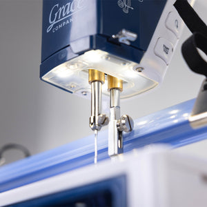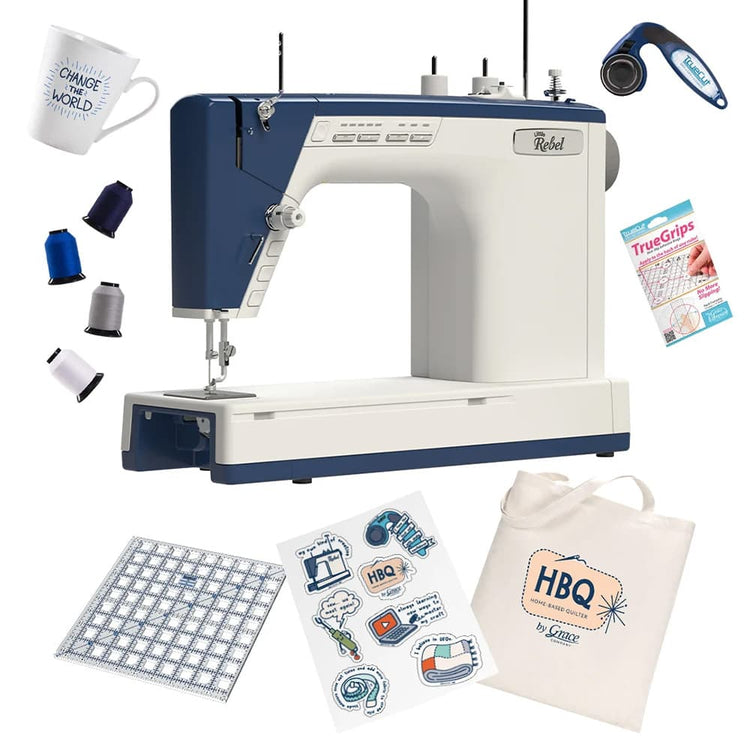 Meet the newest machine in Grace's line-up that is redefining the sewing and quilting world: the Little Rebel. This innovative machine has a high-powered motor for thicker fabrics and can produce up to 1600 stitches per minute. Grace's Little Rebel Sewing and Quilting Machine has built-in laser sensors for precise stitch regulation, making this straight-stitch machine ideal for quilting frames. You can easily tackle any project under the Rebel's needle with its 13" of throat space, high-capacity M-class bobbins, and multiple LED lights. The easy and accessible interface, built-in bobbin winder, dual thread stand, and one-touch buttons make the Rebel a dream to sew on. Grace's Little Rebel empowers you to take the next steps in your sewing journey.