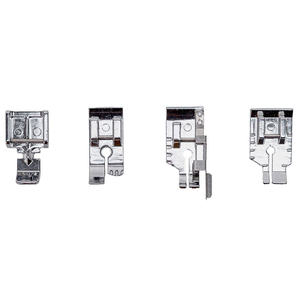 Jump from straight stitch to free motion in a flash to spend more time doing what you love. Its motor is designed to help you finish all types of projects, even when using fabric like denim, leather, or even canvas. For free-motion sewing, it has the standard hopping foot, and in sewing mode you can use any of the four included feet: zipper foot, quarter-inch quilting foot, quarter-inch foot with a guide, and a straight stitch foot.