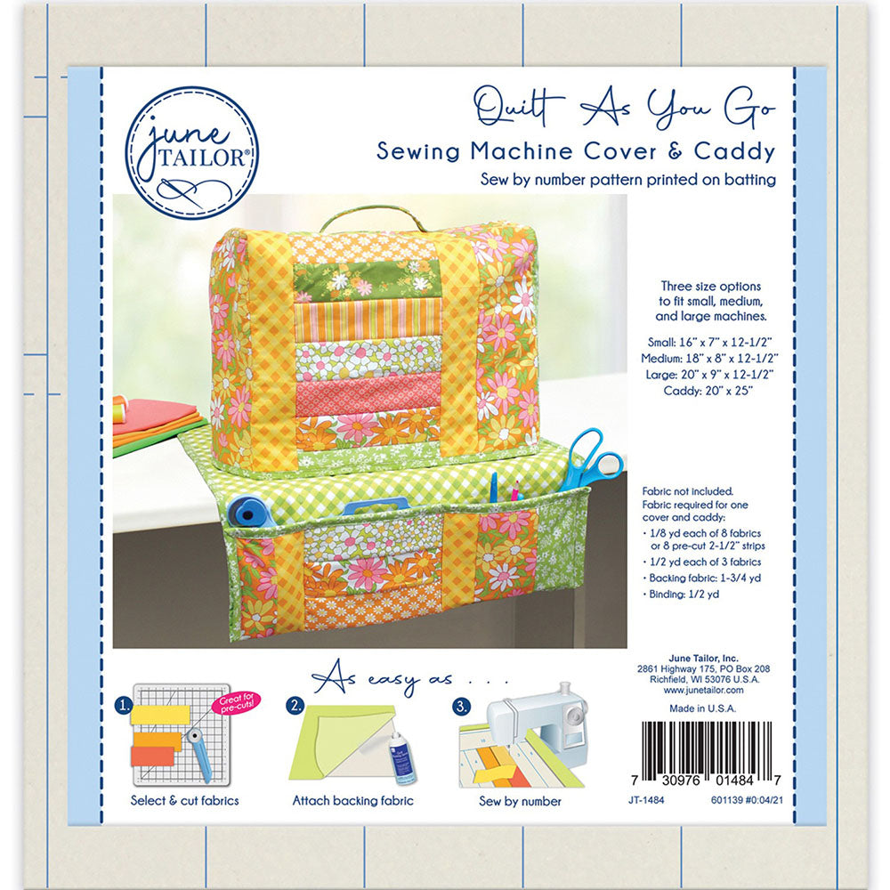 The Quilt As You Go Sewing Machine Cover/Caddy by June Tailor is super cute and fashionable. It would be best to have something to brighten up your sewing machine and give you extra storage for your sewing supplies. The Sewing Machine Cover comes with three pattern lines for three different sizes of sewing machines. The Caddy comes in one size and features pockets to access your supplies.