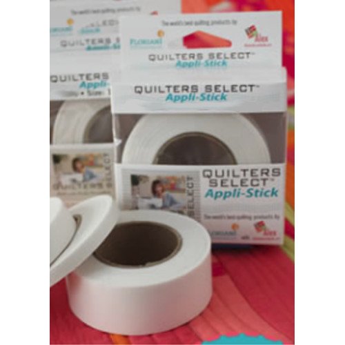 Quilter's Select Appli-Stick Tape makes applying quilt binding easy. It is also ideal for applying decorative trims. Measuring 1 inch by 10 yards, Appli-Stick is fusible on one side and sticky on the other; making it easy to reposition binding and trims before sewing.
