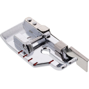 Quarter Inch Foot with Guide: Accurately sew 1/4" seam allowances by lining the edge of the fabric with the metal guide on the side of the presser foot.