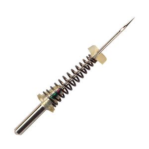 The Schmetz 130/705 H-Q SPR Quilting Spring Needle is designed with a wire coil around the shaft and functions as a presser foot that depresses the fabric as the needle goes down and releases the fabric when the needle raises. This Quilting Spring Needle allows you to free-motion quilt on your machine and stitch monograms in an embroidery hoop without the need for a presser foot. The built-in spring replaces a traditional darning foot while giving you better visibility while sewing. These needles can be used in household sewing machine brands where needles with a flat shank are required.
