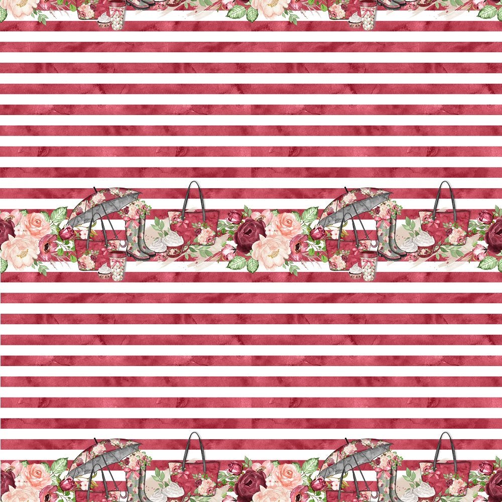 The Burgundy Rain Romance Stripes Fabric is part of the Rain Romance Fabric Collection printed by Sew Creative Fabrics. Digitally Printed on 100% cotton.