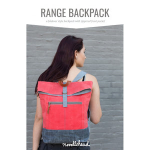 Noodlehead designed the Range Backpack with a foldover top and buckle closure, an interior pocket, and a zippered exterior pocket. The bag also features an optional hanging loop. This pattern is ideal for intermediate sewist or advanced beginner.