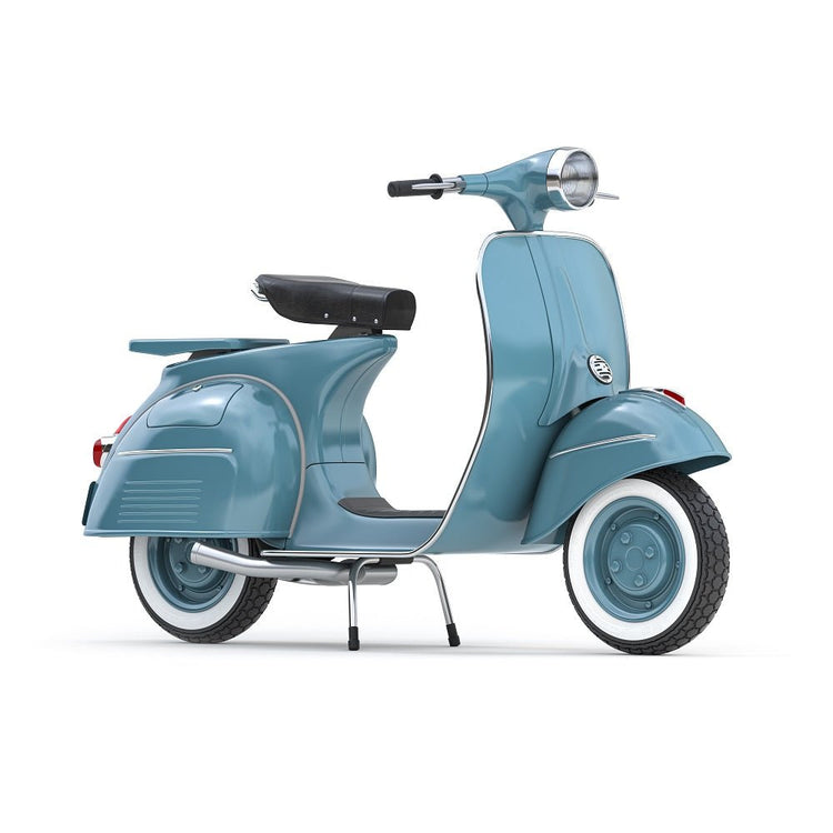 The Realistic Classic Blue Scooter Fabric Panel is part of the Photography Fabric Collection printed by Sewing Parts Online. Digitally Printed on 100% cotton. This panel is available in 2 different sizes: