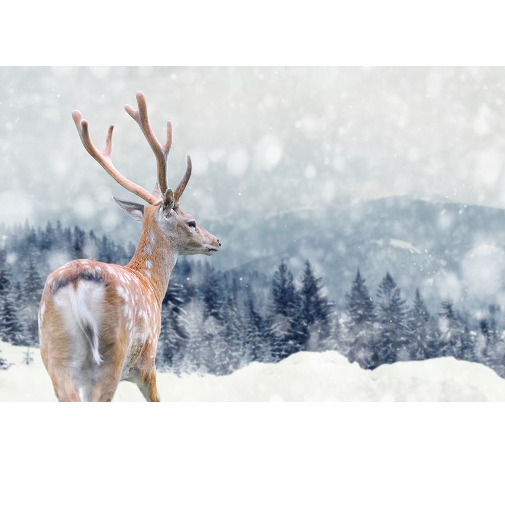 Realistic Deer Snowy Mountains Fabric Panel Details