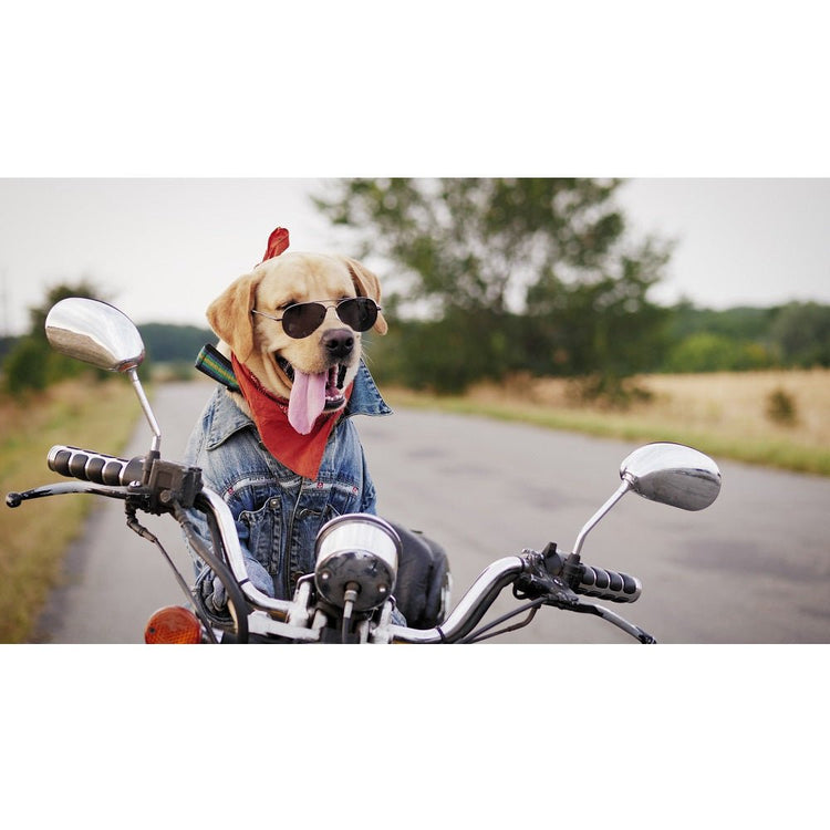 Realistic Dog on a Motorcycle Fabric Panel Details