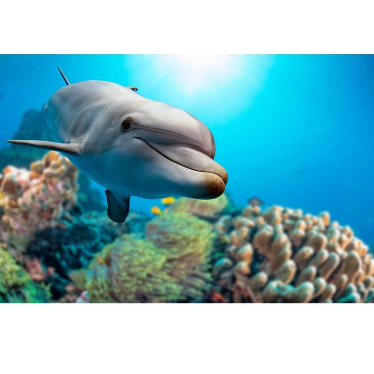 Realistic Dolphin Underwater on Reef Fabric Panel