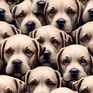 The Realistic Packed Labrador Puppies Fabric is printed by Sew Creative Fabrics. Digitally Printed on 100% cotton.