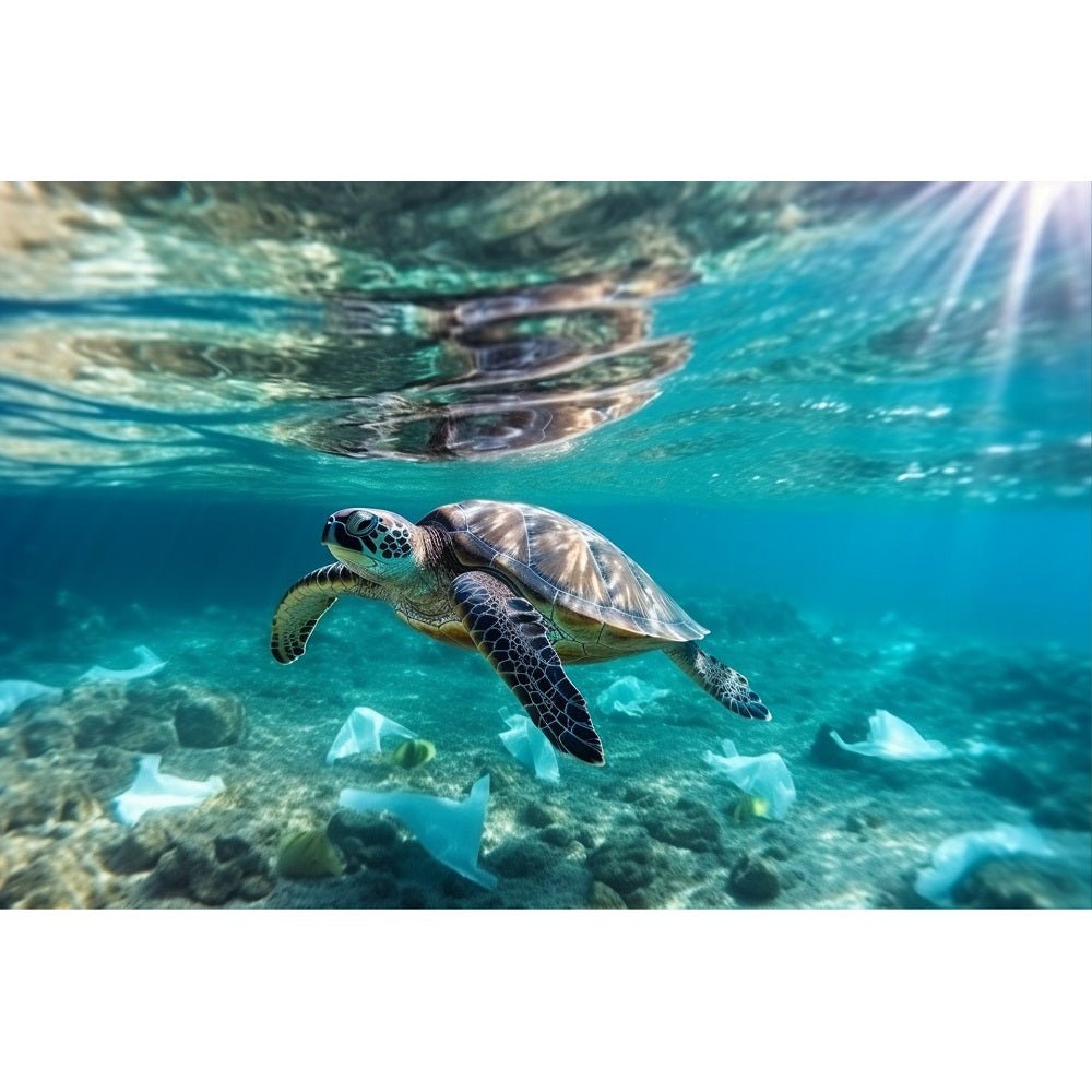 Realistic Sea Turtle in Ocean Fabric Panel Details