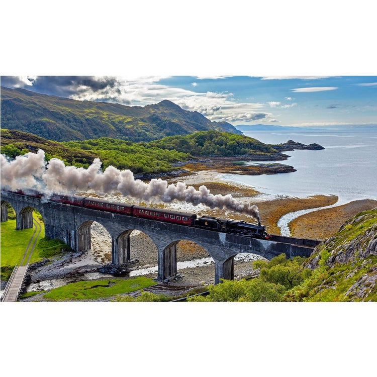 Realistic Steam Train Crossing Bridge Fabric Panel