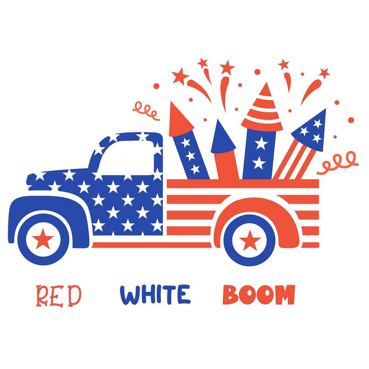 The Red/Blue Red White Boom! Fabric Panel is printed by Sewing Parts Online. This panel is digitally printed on 100% cotton. The fabric panel is available in 6 different sizes: