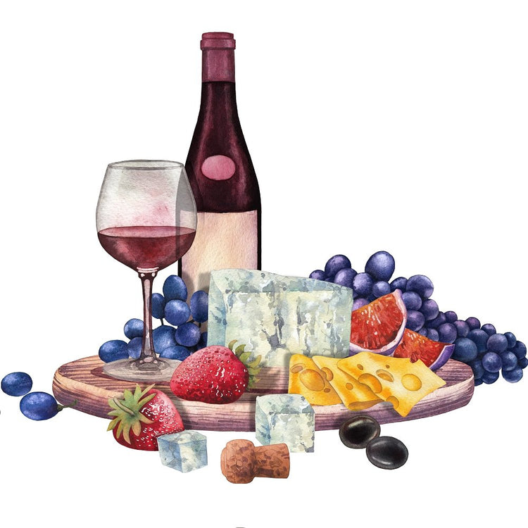 Red Wine & Cheese Charcuterie Board Fabric Panel - Variation 2