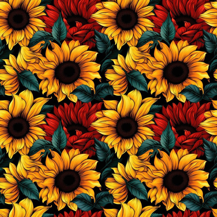 Red & Yellow Sunflowers Fabric