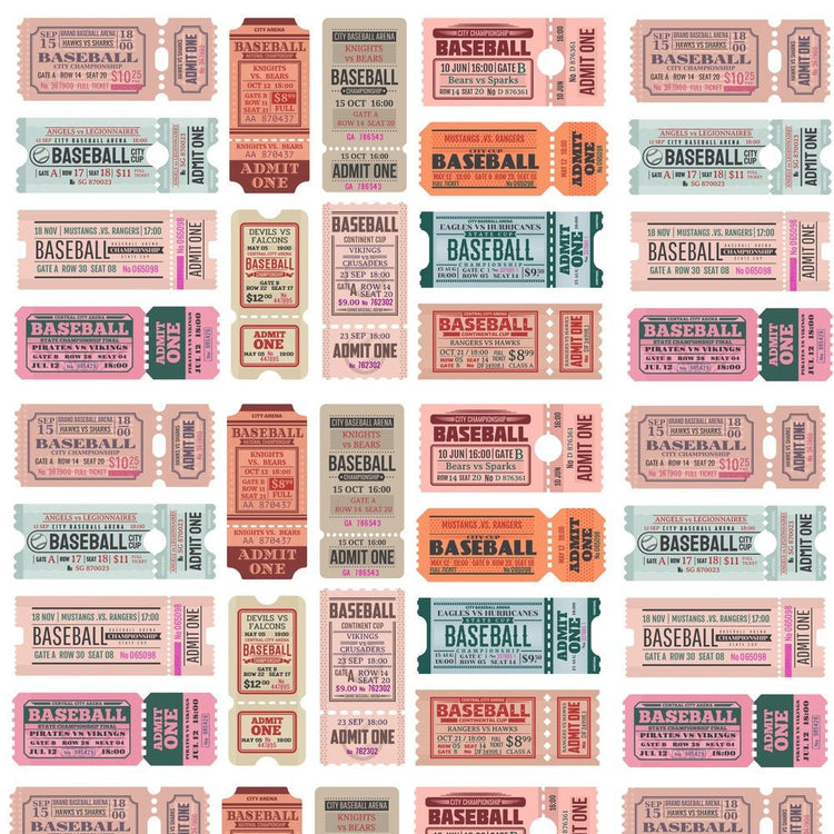 The Retro Baseball Tickets Fabric is a part of the Retro Tickets Fabric Collection printed by Sew Creative Fabrics. Digitally Printed on 100% cotton.