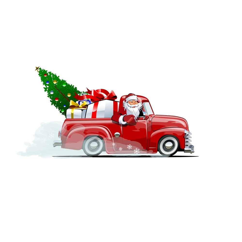 Retro Christmas Delivery Truck Fabric Panel - White Details
