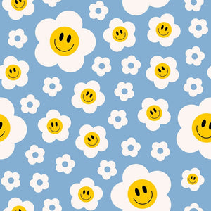 The Blue Retro Groovy Smiling Flowers Fabric is part of the Retro Fabric Collection printed by Sew Creative Fabrics. Digitally Printed on 100% cotton.