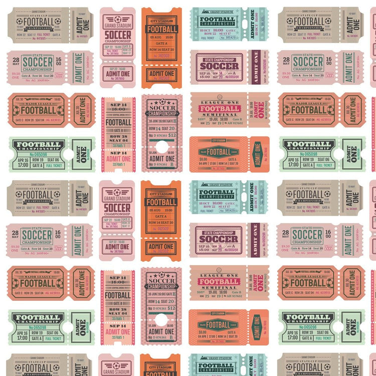 The Retro Soccer & Football Tickets Fabric is a part of the Retro Tickets Fabric Collection printed by Sew Creative Fabrics. Digitally Printed on 100% cotton.