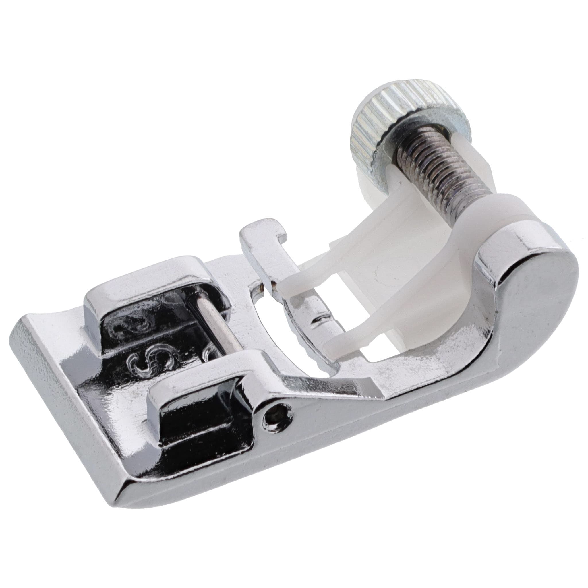 The Ribbon/Sequin Foot makes attaching ribbon and sequins so much easier. This foot is designed to guide ribbon or sequins through where they are placed, allowing them to feed through evenly as you continue sewing. In addition to attaching ribbon, a wide ladder stitch can be used with a narrow ribbon to make an easy and functional drawstring.