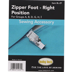 Right Position Zipper Foot, Babylock #BL-ZF Details