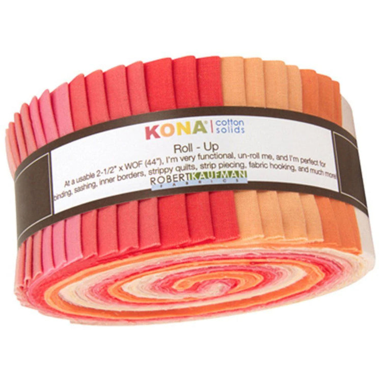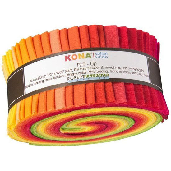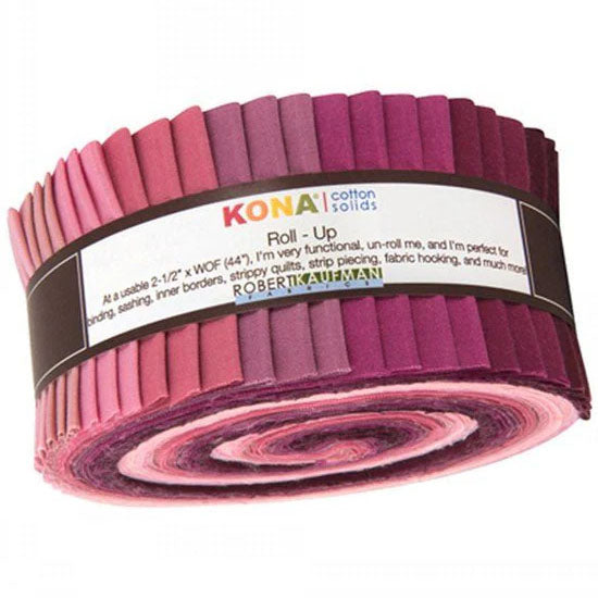 Precut fabric rolls are great for saving time and money when quilting or crafting. These 2-1/2" by 44" strips are ideal for binding, sashing, inner borders, strippy quilts, strip piecing, and more. Robert Kaufman's Kona Solids Fabric Rolls are available in 14 color variations, so you are sure to find the one that best suits your project. These 100% cotton Fabric Rolls come 40 to a roll.