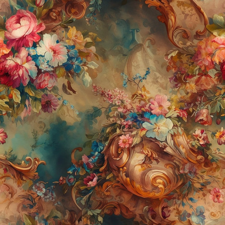 The Rococo Flowers Pattern 6 Fabric is part of the Rococo Flowers Fabric Collection printed by Sew Creative Fabrics. Digitally Printed on 100% cotton.
