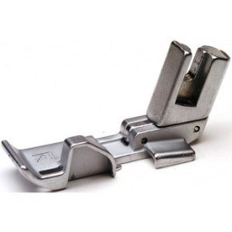 Feed your fabric through the small funnel located on the front of the foot. The funnel turns the fabric under while the needle stitches it down to create a perfect narrow hem.