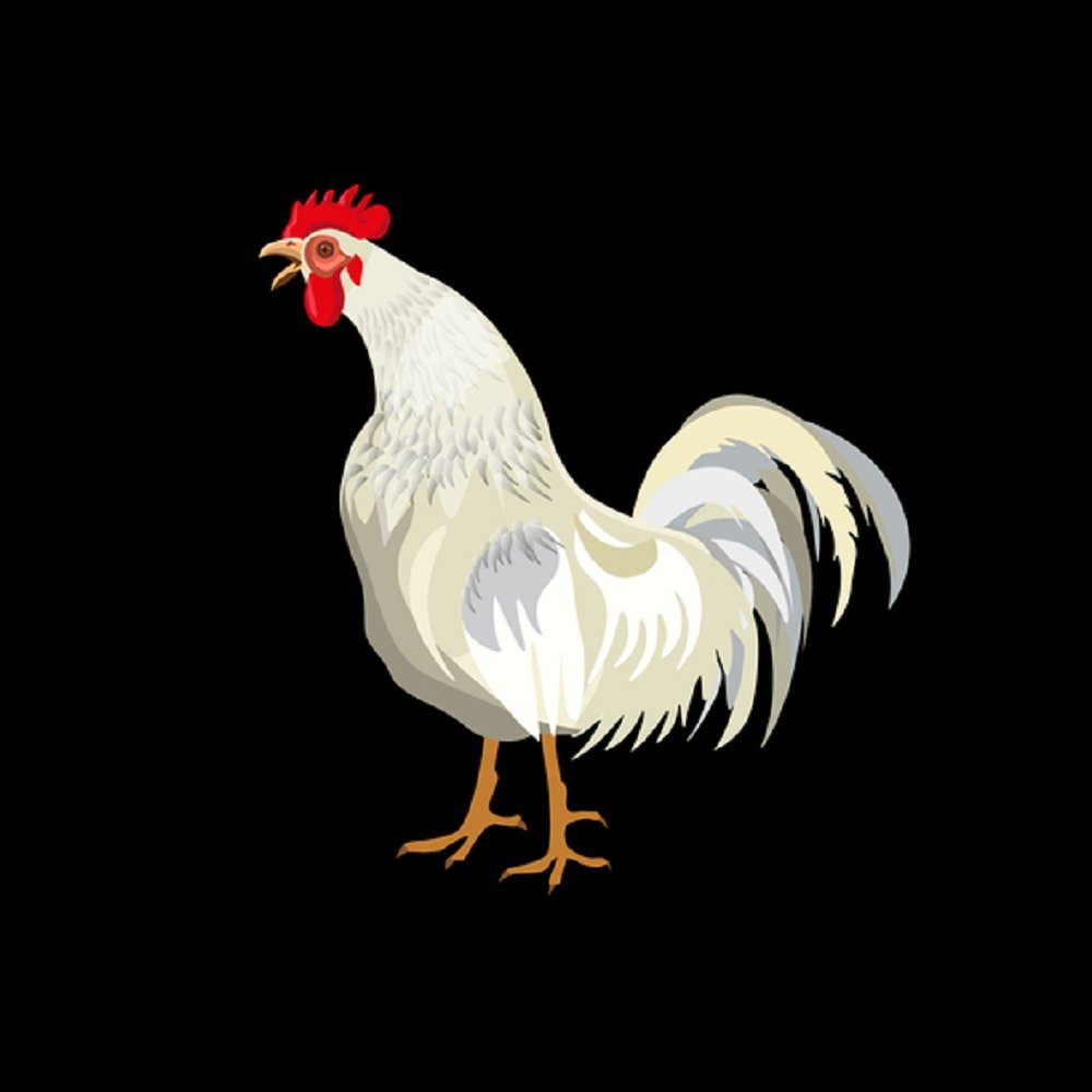 Rooster Crowing Fabric Panel - Black Details