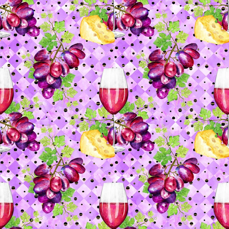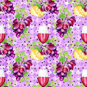 Rose and Wine Glasses and Grapes Fabric - Purple
