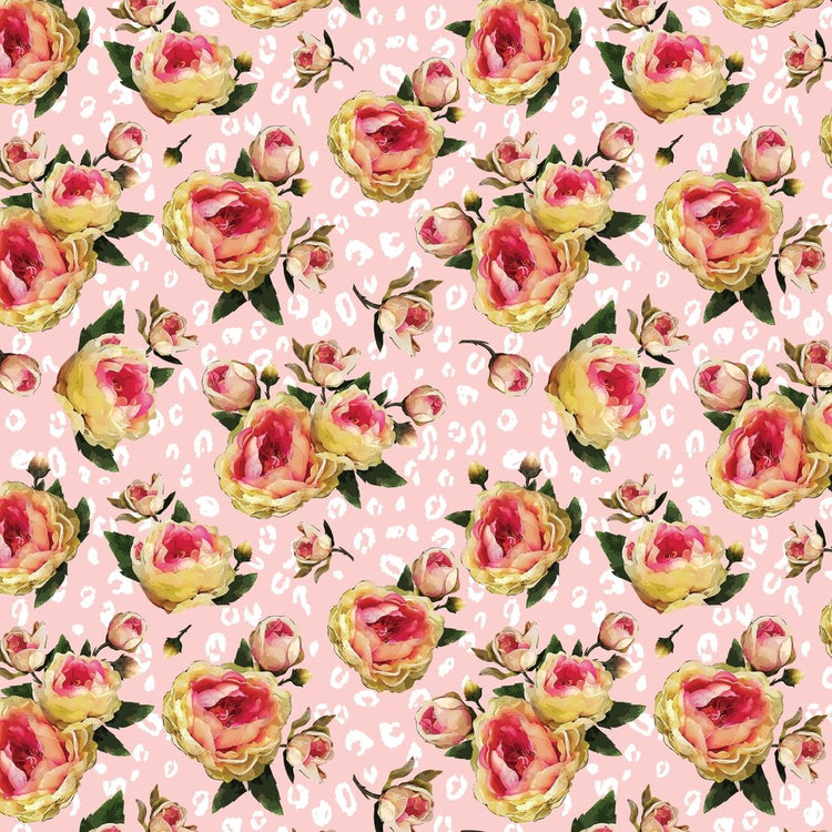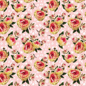 Rose & Leopard Print Fabric - Pink
