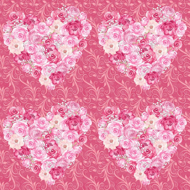 The Red Roses Heart Valentine Floral Heart Fabric is part of the Roses Heart Valentine Fabric Collection printed by Sew Creative Fabrics. Digitally Printed on 100% cotton.