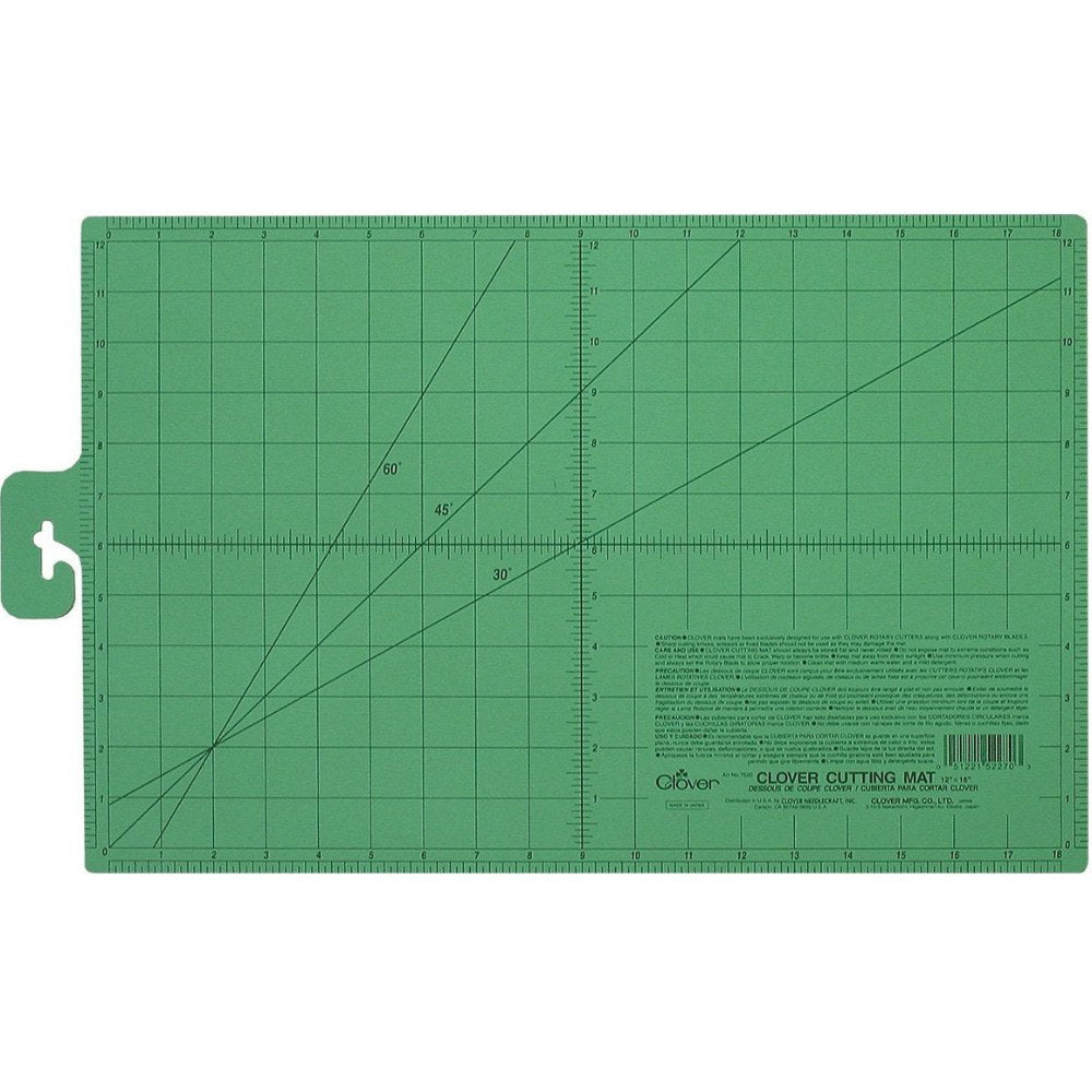 This self-healing mat is not the same as other mats. Clover incorporated some great, practical features that make theirs unique. For starters, they've used a soft green color that is easy on the eyes. And, not only do they have extended grid lines, they have the numbers marking inches on the outside edge of the grid so they are visible even when your fabric is right up to the edge of the grid. To top it off, it has a hanging tab for easy storage and to prevent warping. What more can you ask for?