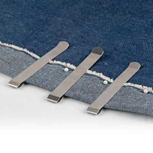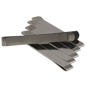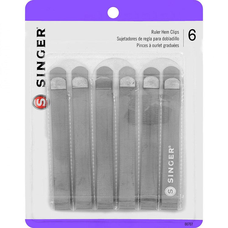 The Ruler Hem Clips by Singer are perfect for holding drapes, clothing, blankets, and other materials without wrinkling or piercing. The design allows the clips to open up like a bobby pin and securely grip your fabrics while pressing seams or basting. The Singer Ruler Hem Clips are conveniently engraved with measurements that assist with cuff depths, seam placement and ensure a straight hem.